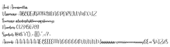 La fuente Annamellia destaca por sus sutiles irregularidades y suaves curvas, creando una atmósfera acogedora y accesible. Este tipo de letra es especialmente adecuada para emprendedores creativos, blogs de estilo de vida y productos boutique. Con su rango versátil y encanto distintivo, Annamellia permite a los diseñadores contar historias visualmente cautivadoras, ya sea en títulos elegantes o en composiciones decorativas, aportando un toque artesanal a cada diseño.